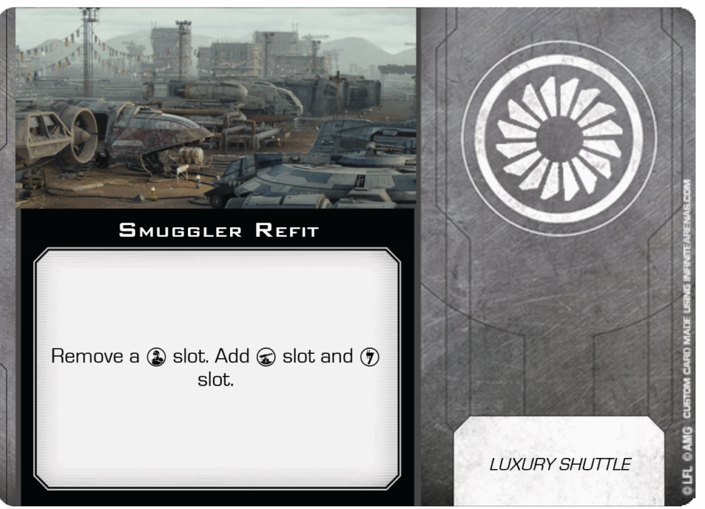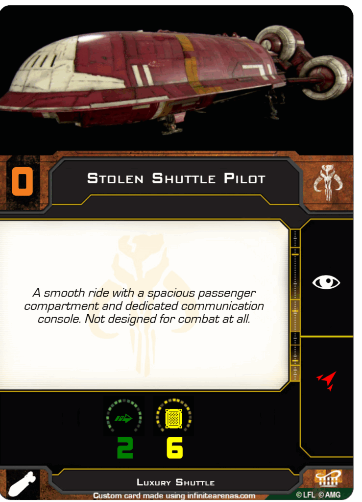| Gambler | 4 | 8 | Dalan Oneros (SV) | After you fully execute a maneuver, you may gain 1 stress token to rotate your ship 90° |