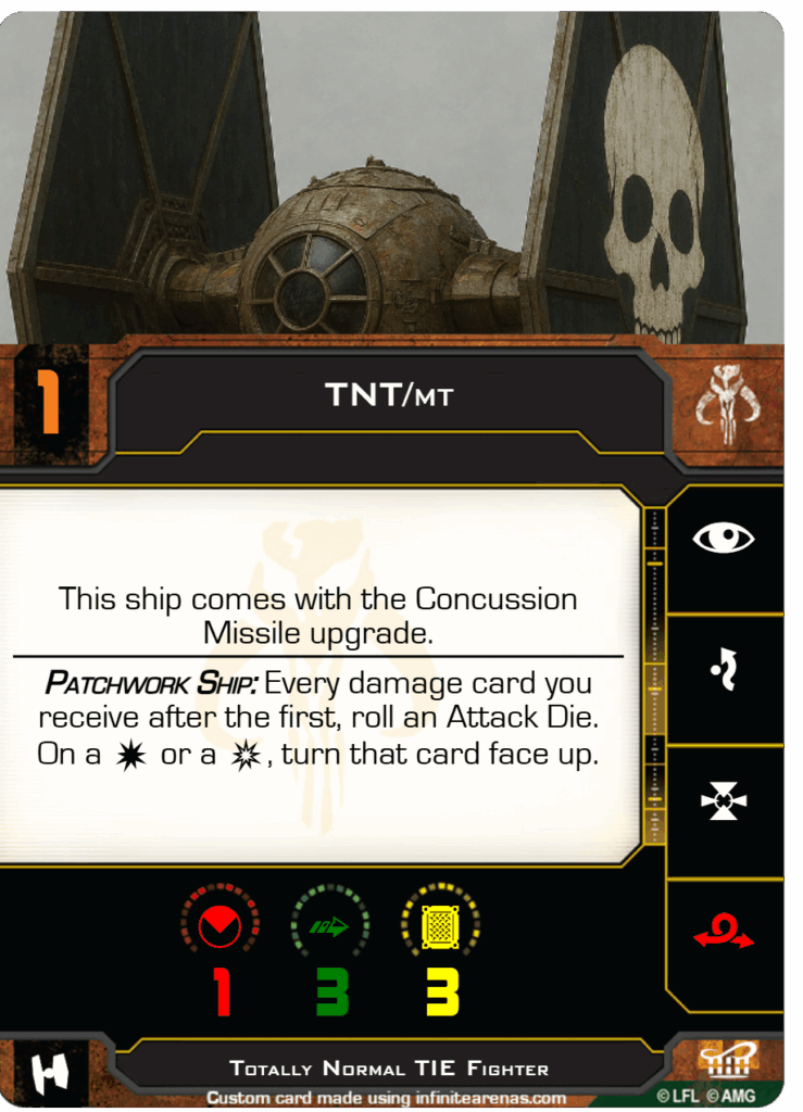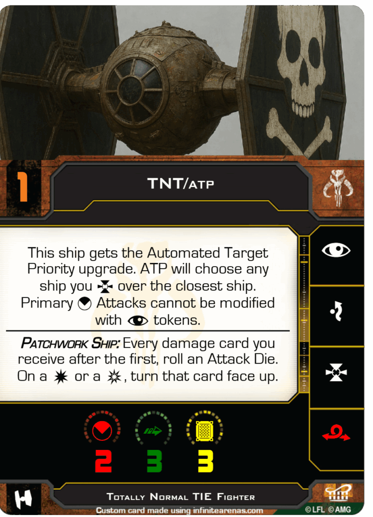 | Professional | 5 | 10 | The Mandalorian | While you defend or perform an attack, if you are in the Front Arc at range 1-2 of 2 or more enemy ships, you may change 1 of your blank results to a Focus result. |