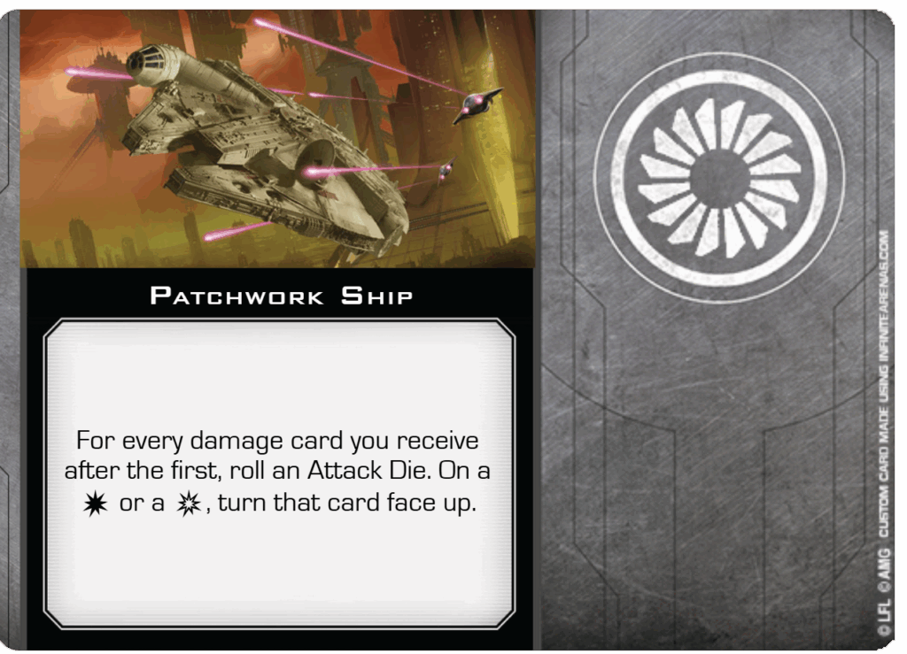 | Professional | 5 | 10 | Boba Fett | While you defend or perform an attack, you may reroll 1 of your dice for each enemy ship at range 0-1. |